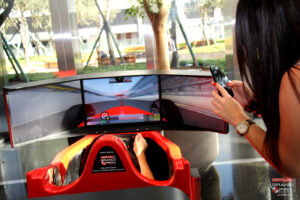 O simulador Cockpit Formula “motion” reúne todos os requisitos para uma simulação extremamente realista e empolgante, na qual são reproduzidos os movimentos do carro para recriar a verdadeira sensação de pilotagem do mundo real.
