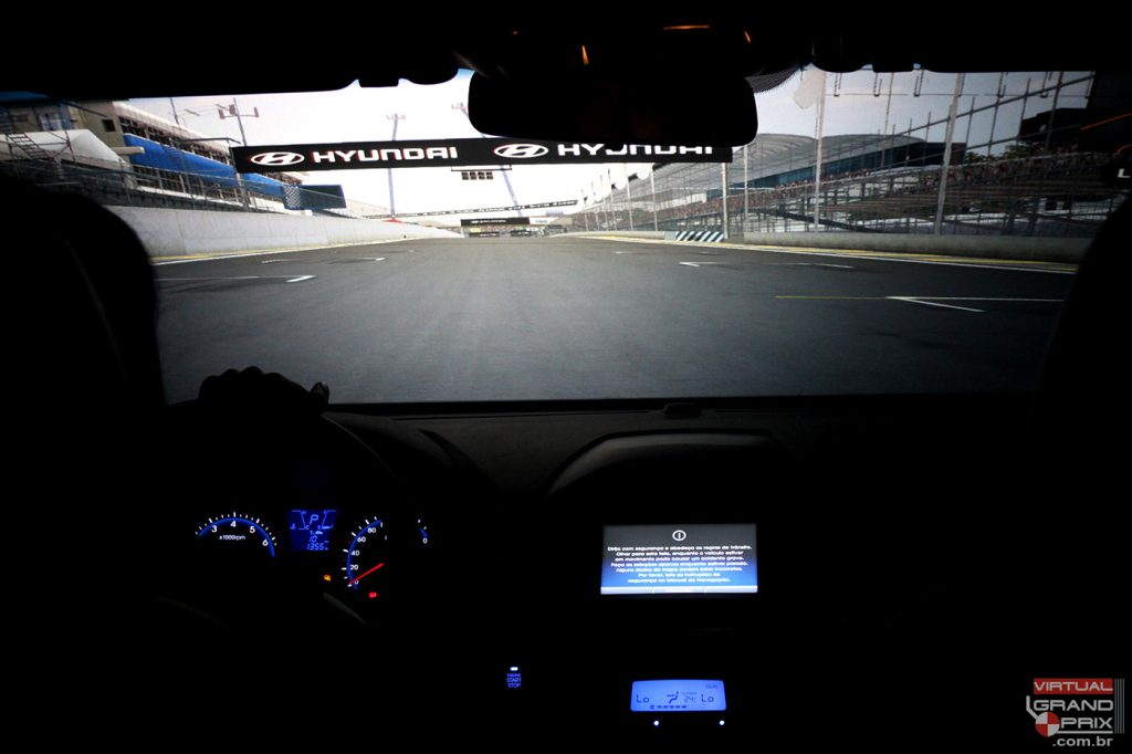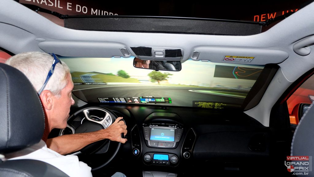 Desenvolvido especialmente para ações promocionais de lançamento da Hyundai, este simulador foi montado dentro de um ix35 real, utilizando todos os seus comandos originais (volante, freio, acelerador) e com geração de imagem projetada sobre toda a área do parabrisa para maior realismo.