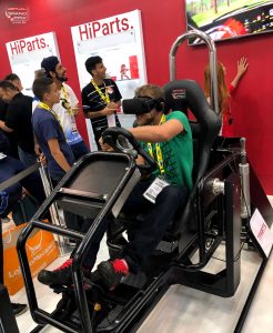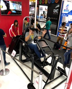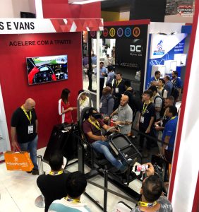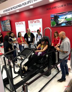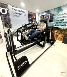 Projetado para feiras, ativações e eventos corporativos, ele reproduz com fidelidade as sensações de aceleração, frenagem e curvas — colocando o participante dentro da ação.